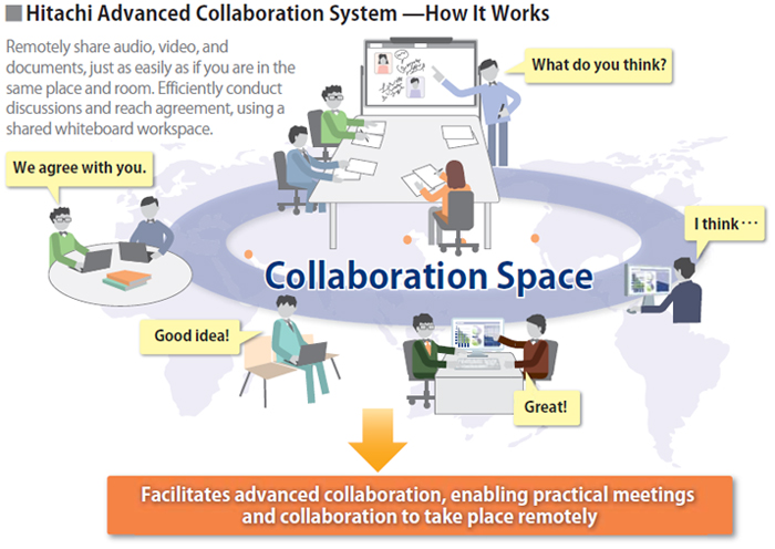 For corporations, collaboration is essential to improving productivity. Corporations need to build environments that enable diverse human assets to effectively collaborate. This need is growing as workforces become increasingly dispersed both in time and place, and as workers increasingly work from home or outside the office on flex-time and satellite and international offices become more common. This case study looks at how the Hitachi Advanced Collaboration System (ACS) enables effective collaboration, focusing on how meetings are conducted at European companies, where there is an emphasis on work-life balance and work-style flexibility due to the historic and geographic background of rich ethnic, cultural, and religious diversity.